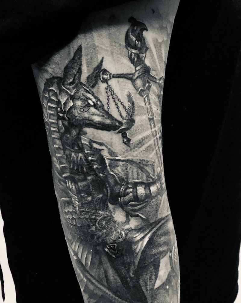 当前位置: 首页 >上海市纹身店-上海桃刺青TaoTattoo纹身图案>阿努比斯完成纹身图片_手臂纹身图案