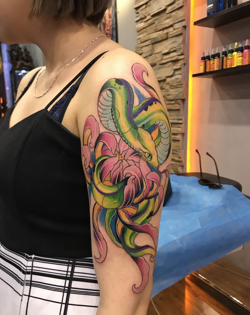 • 女性大花胸纹身_43张霸气漂亮的女性大花胸纹身图案作品