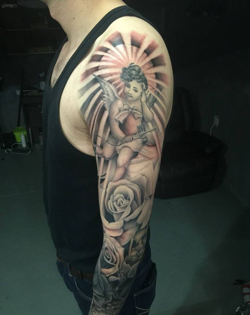 当前位置: 首页 >上海市纹身店-上海任刺青纹身工作室纹身图案>天使花臂纹身图片_欧美清新写实肖像成品手臂臀部人物植物宗教纹身图案
