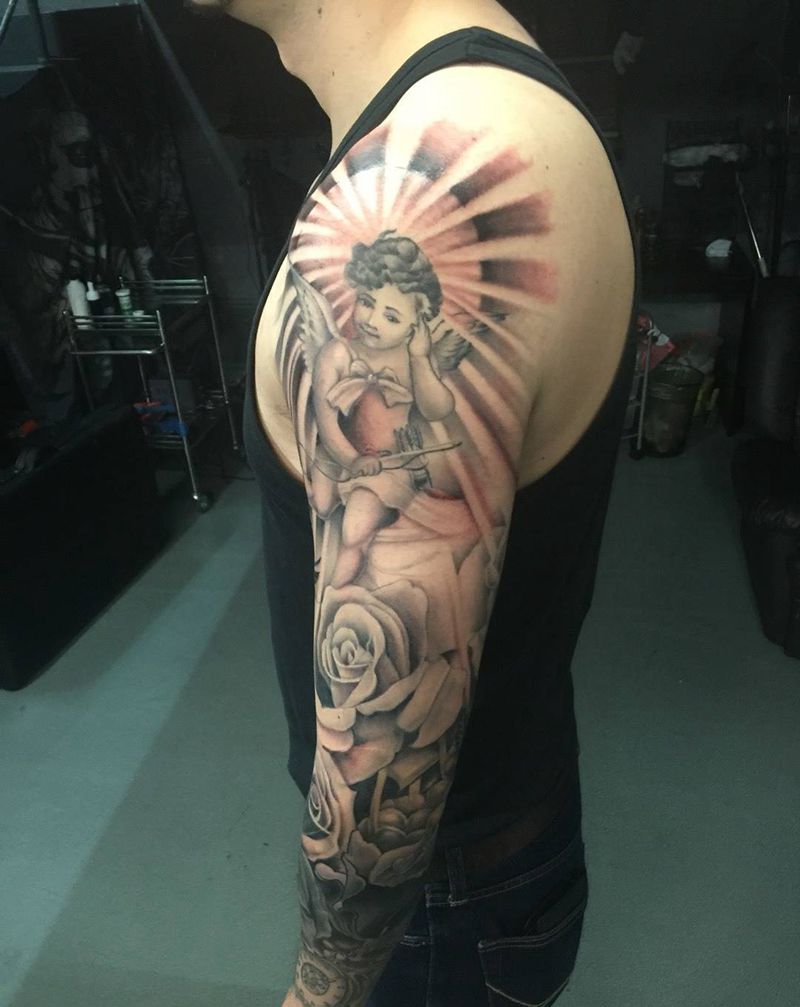 当前位置: 首页 >上海市纹身店-上海任刺青纹身工作室纹身图案>天使花臂纹身图片_欧美清新写实肖像成品手臂臀部人物植物宗教纹身图案