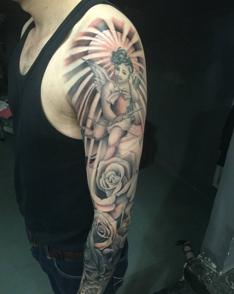 当前位置: 首页 >上海市纹身店-上海任刺青纹身工作室纹身图案>天使花臂纹身图片_欧美清新写实肖像成品手臂臀部人物植物宗教纹身图案