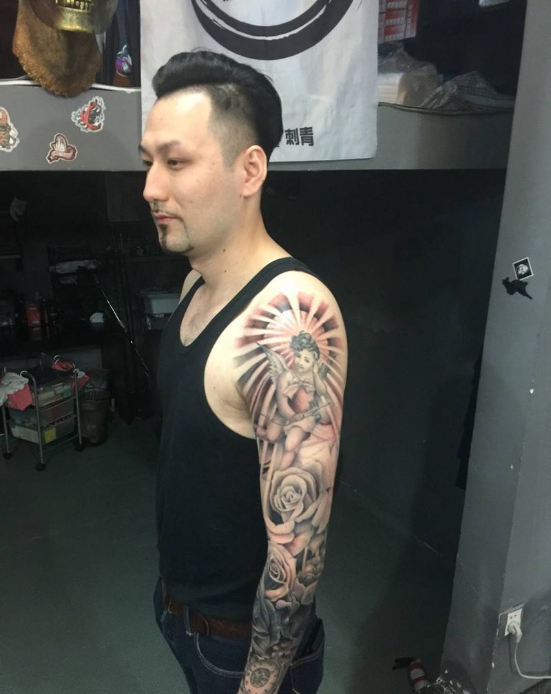 当前位置: 首页 >上海市纹身店-上海任刺青纹身工作室纹身图案>天使花臂纹身图片_欧美清新写实肖像成品手臂臀部人物植物宗教纹身图案