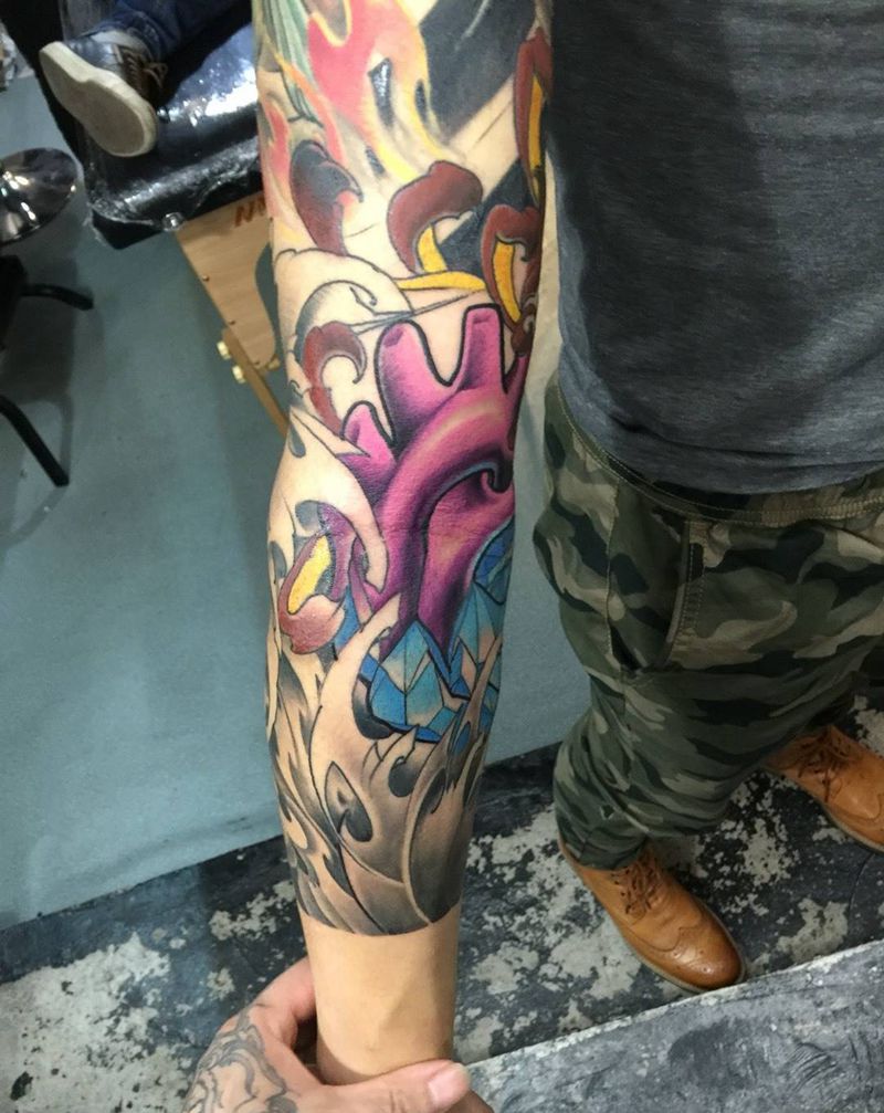 当前位置: 首页 >上海市纹身店-上海任刺青纹身工作室纹身图案>心脏菊花花臂未完纹身图片_植物静物传统手臂手部臀部成品肩部原创习俗纹身图案