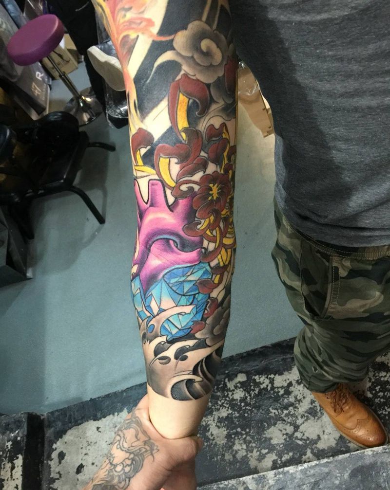 当前位置: 首页 >上海市纹身店-上海任刺青纹身工作室纹身图案>心脏菊花花臂未完纹身图片_植物静物传统手臂手部臀部成品肩部原创习俗纹身图案