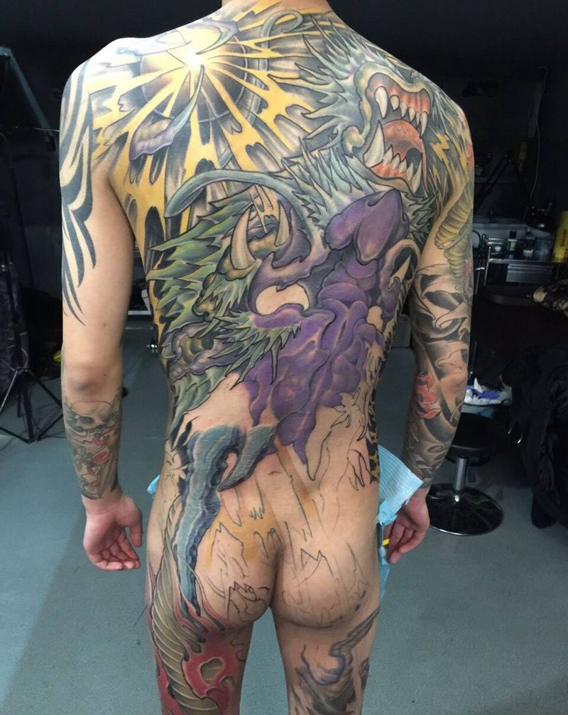 • T云龙九郎纹身图片_背部老传统云龙九郎纹身图案