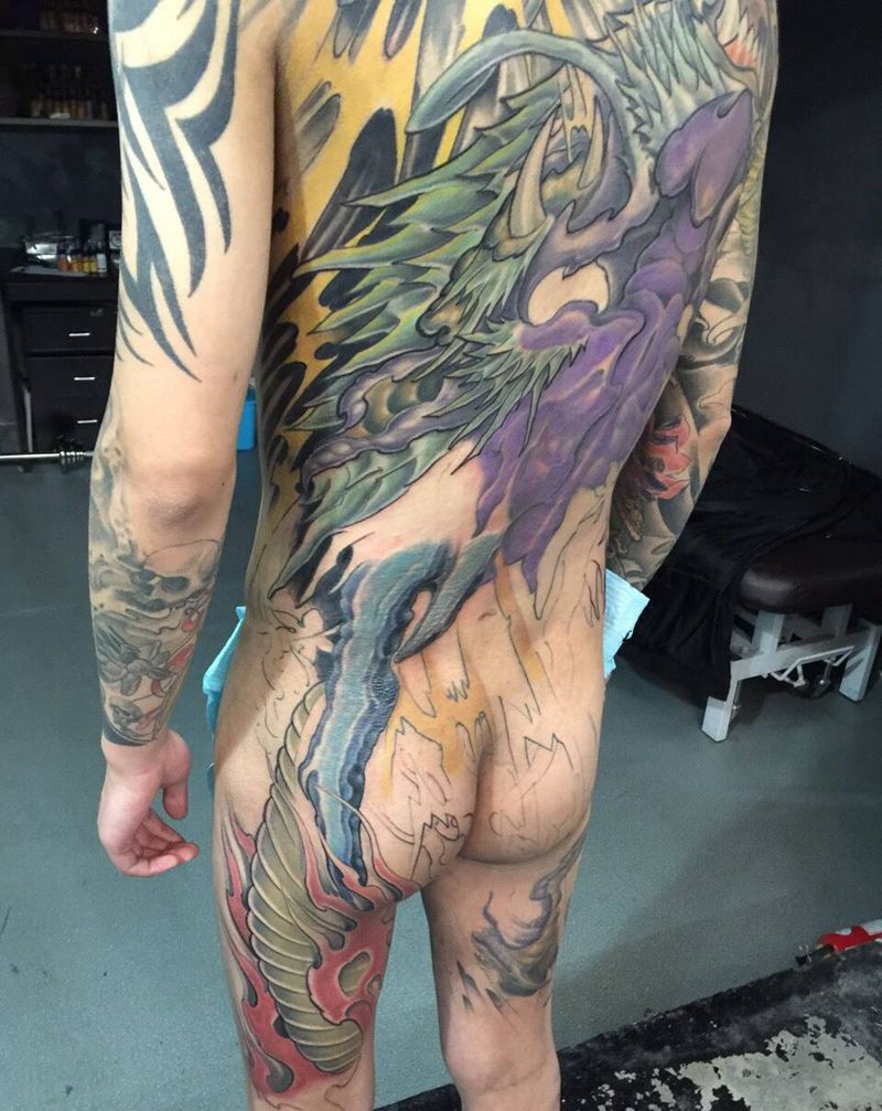 • T云龙九郎纹身图片_背部老传统云龙九郎纹身图案