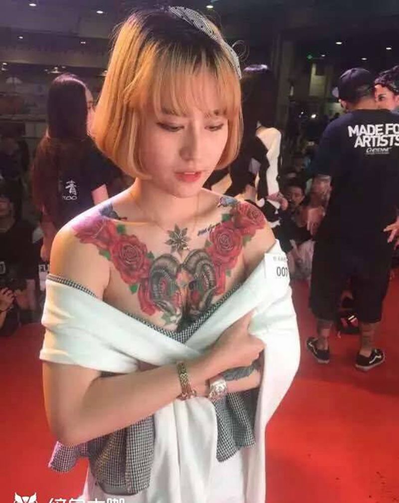 • 女性大花胸纹身_43张霸气漂亮的女性大花胸纹身图案作品