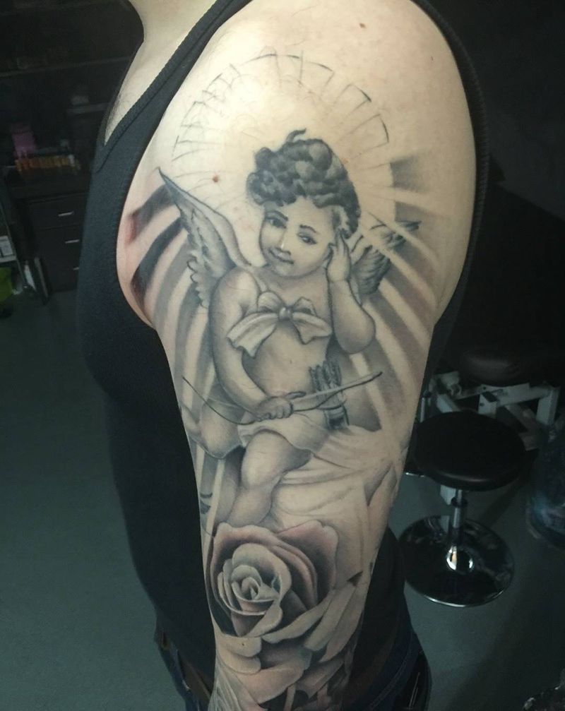 当前位置: 首页 >上海市纹身店-上海任刺青纹身工作室纹身图案>天使花臂纹身图片_肖像欧美写实手臂手部成品人物宗教清新腿部纹身图案