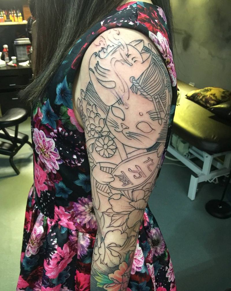 当前位置: 首页 >上海市纹身店-上海任刺青纹身工作室纹身图案>招财猫花臂纹身图片_传统清新国画人物动物臀部手臂成品手稿手部纹身图案