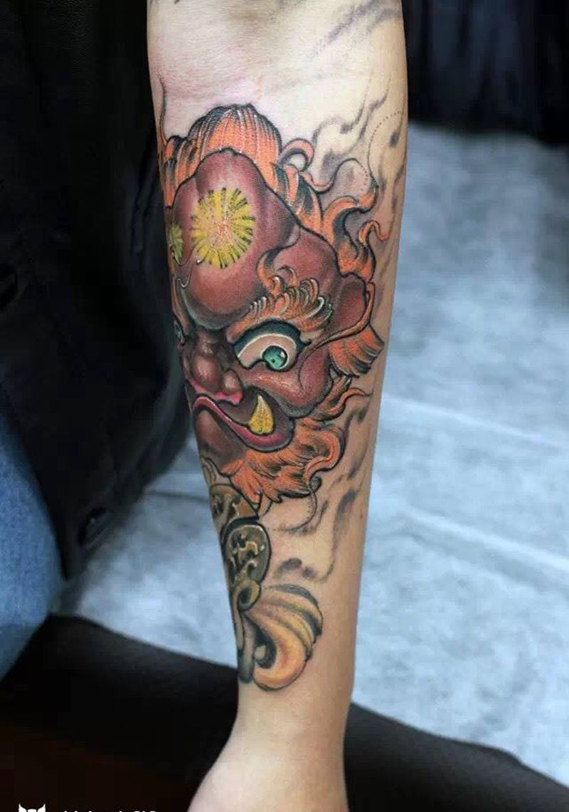 当前位置: 首页 >上海市纹身店-上海任刺青纹身工作室纹身图案>唐狮纹身图片_传统手臂手部成品原创动物国画腿部手稿习俗纹身图案