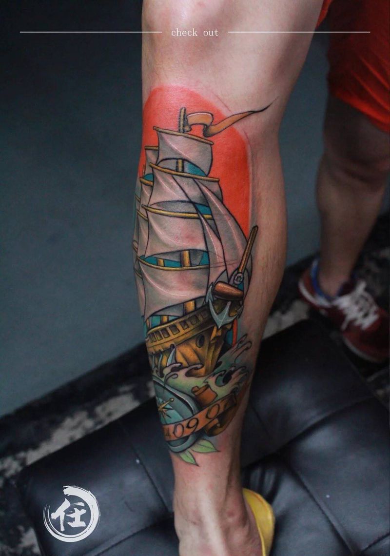 • T网红王老大花腿龙纹身图片_腿部新传统纹身图案