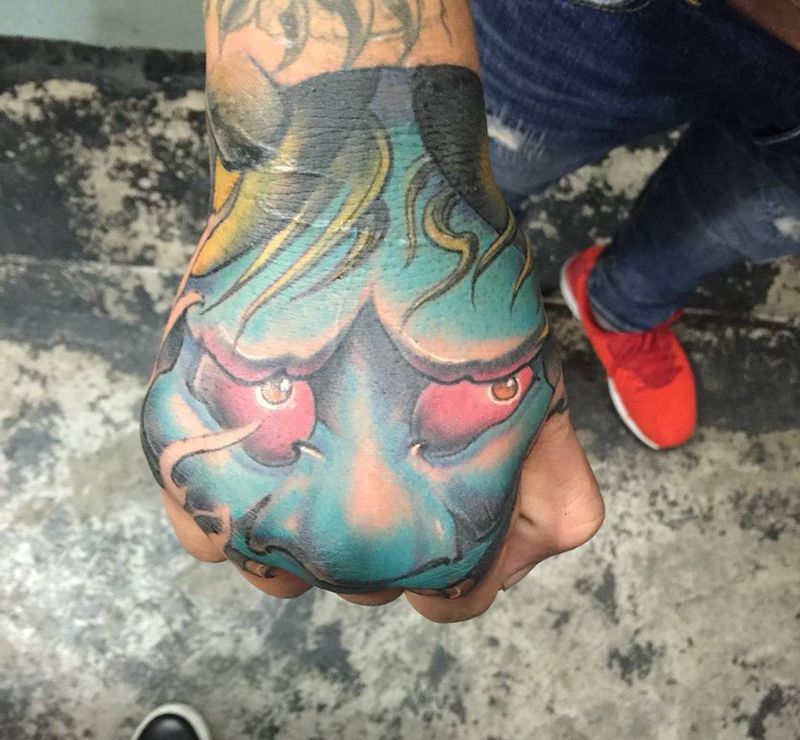 般若遮盖旧图纹身图片_传统鬼神成品手部宗教手臂写实原创肩部颈部纹身图案