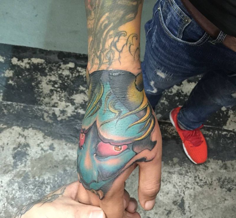 般若遮盖旧图纹身图片_传统鬼神成品手部宗教手臂写实原创肩部颈部纹身图案