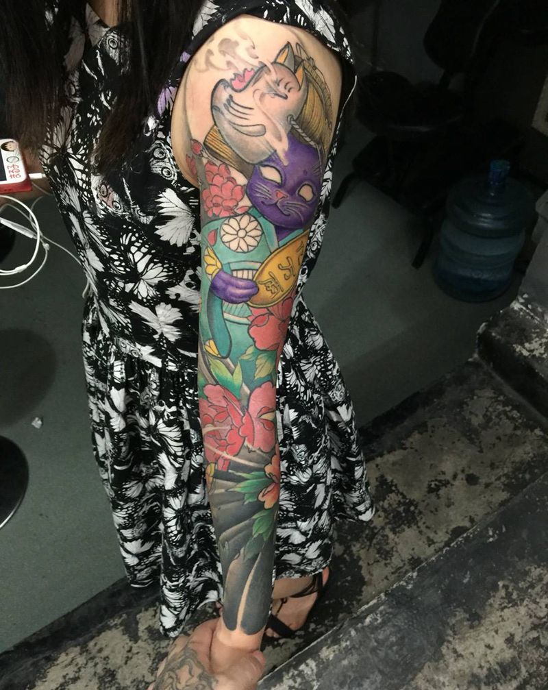 当前位置: 首页 >上海市纹身店-上海任刺青纹身工作室纹身图案>招财猫花花臂纹身图片