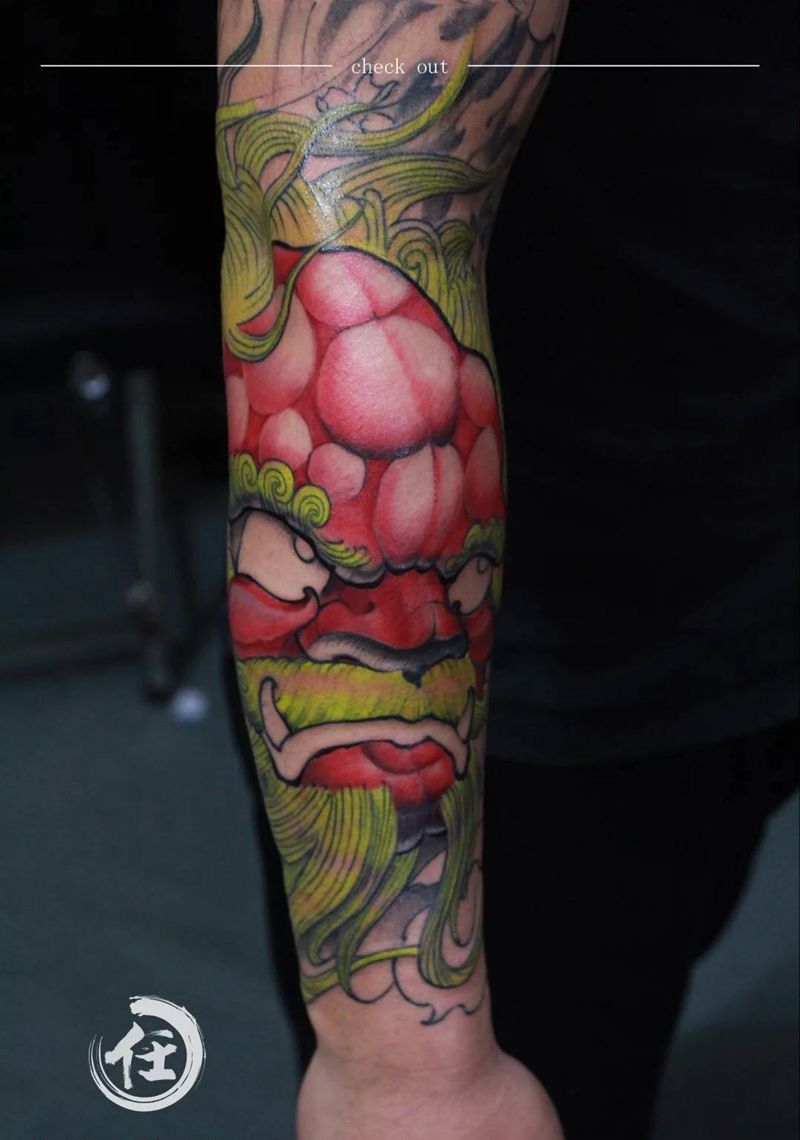 当前位置: 首页 >上海市纹身店-上海任刺青纹身工作室纹身图案>唐狮花臂待续纹身图片_成品手臂肩部传统国画动物静物鬼神原创习俗纹身图案