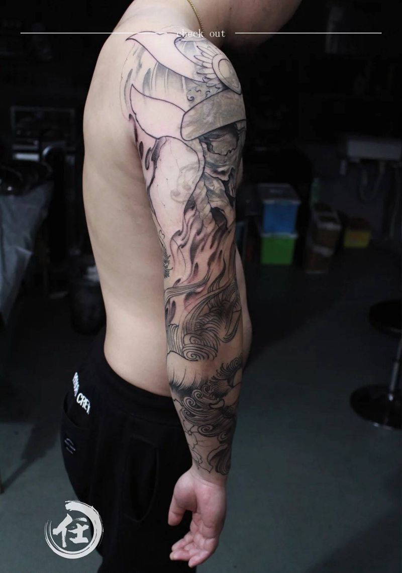 当前位置: 首页 >上海市纹身店-上海任刺青纹身工作室纹身图案>骷髅武士花臂纹身图片_传统习俗成品手臂肩部原创人物鬼神植物国画纹身图案