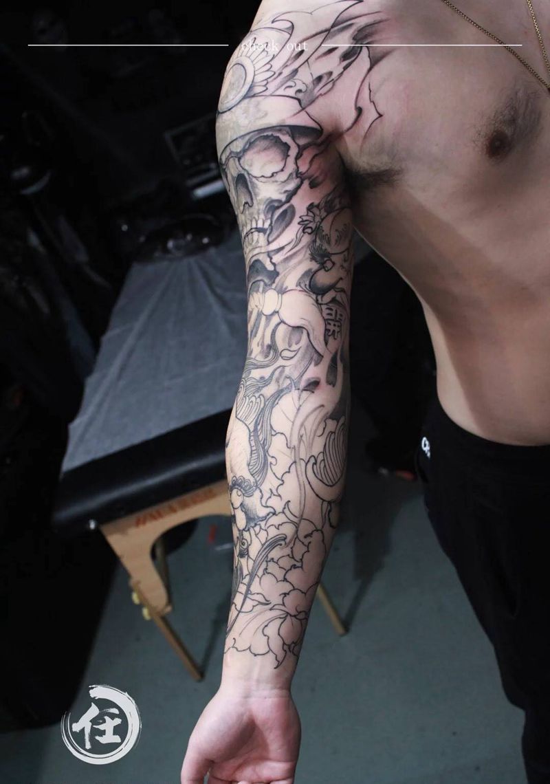 当前位置: 首页 >上海市纹身店-上海任刺青纹身工作室纹身图案>骷髅武士花臂纹身图片_传统习俗成品手臂肩部原创人物鬼神植物国画纹身图案