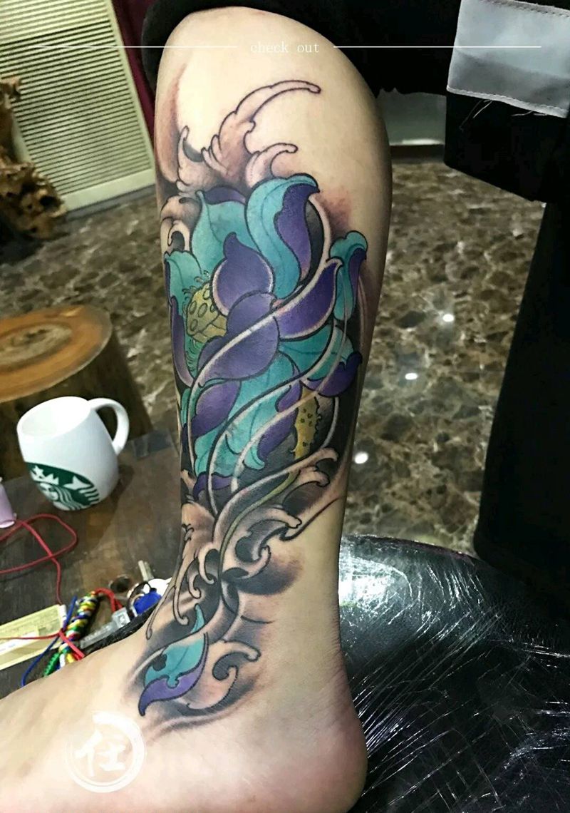 当前位置: 首页 >上海市纹身店-上海任刺青纹身工作室纹身图案>荷花纹身图片_脚部传统植物成品纹身图案