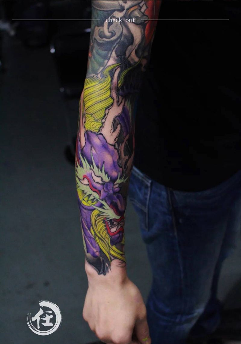• T网红王老大花腿龙纹身图片_腿部新传统纹身图案