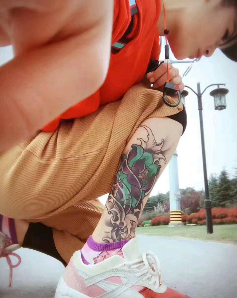 • T网红王老大花腿龙纹身图片_腿部新传统纹身图案