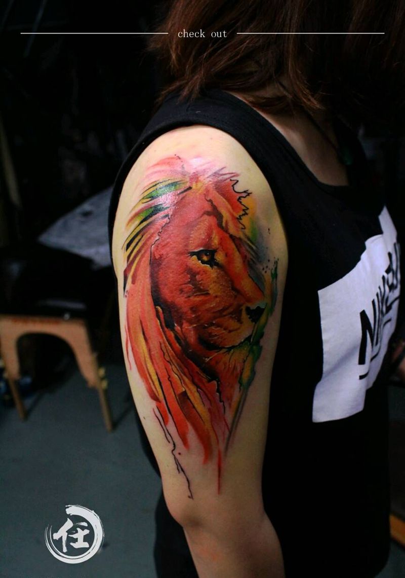 当前位置: 首页 >上海市纹身店-上海任刺青纹身工作室纹身图案>水彩狮子纹身图片_手臂欧美动物成品纹身图案