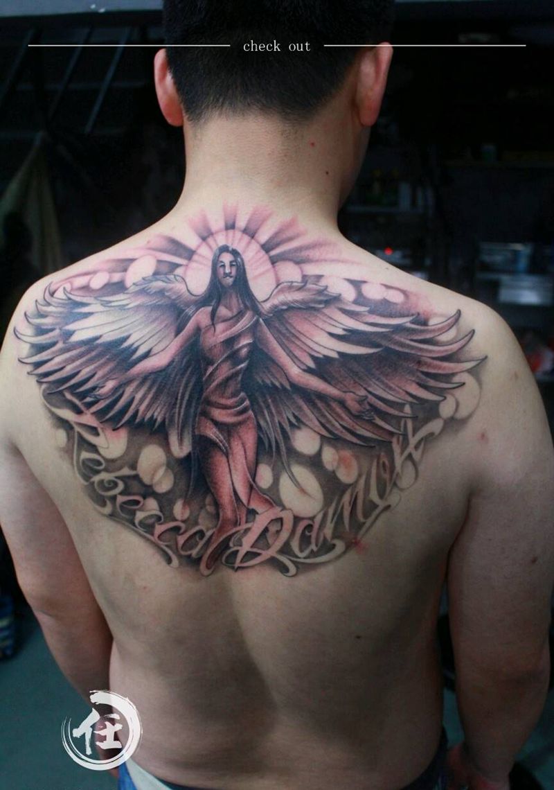 当前位置: 首页 >上海市纹身店-上海任刺青纹身工作室纹身图案>大天使纹身图片_背部欧美肖像人物成品纹身图案