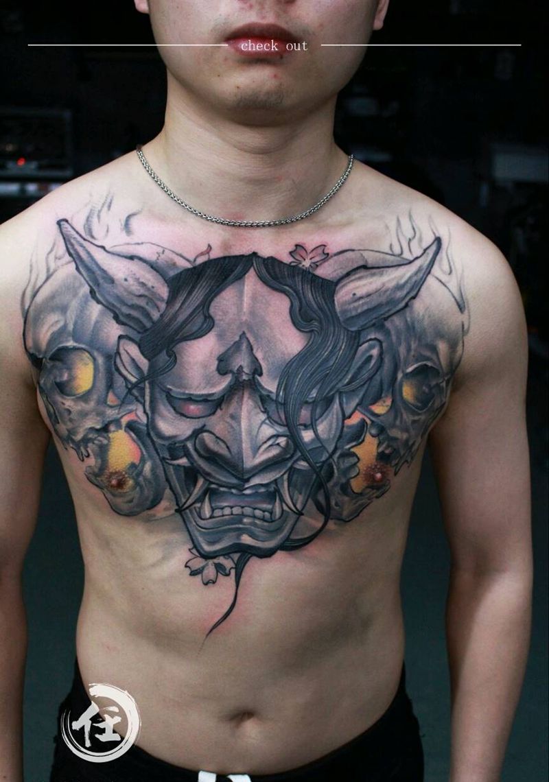 当前位置: 首页 >上海市纹身店-上海任刺青纹身工作室纹身图案>大胸花纹身图片_胸部传统鬼神成品纹身图案