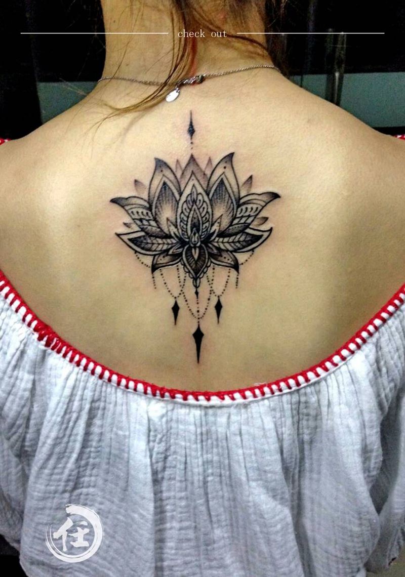 后背繁花纹身图片_背部清新几何成品纹身图案