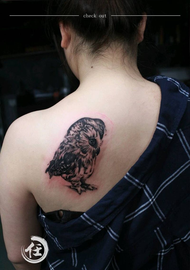 当前位置: 首页 >上海市纹身店-上海任刺青纹身工作室纹身图案>猫头鹰纹身图片_肩部清新动物成品纹身图案