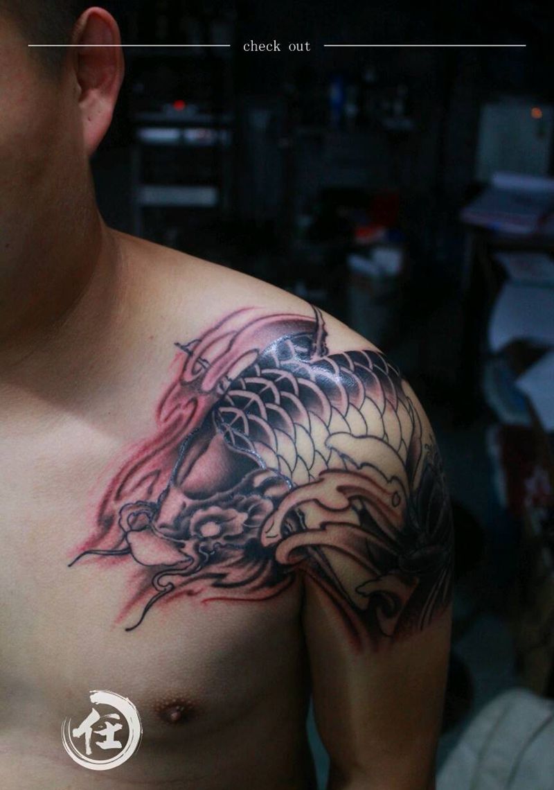 鲤鱼遮盖纹身图片_肩部传统动物原创成品纹身图案