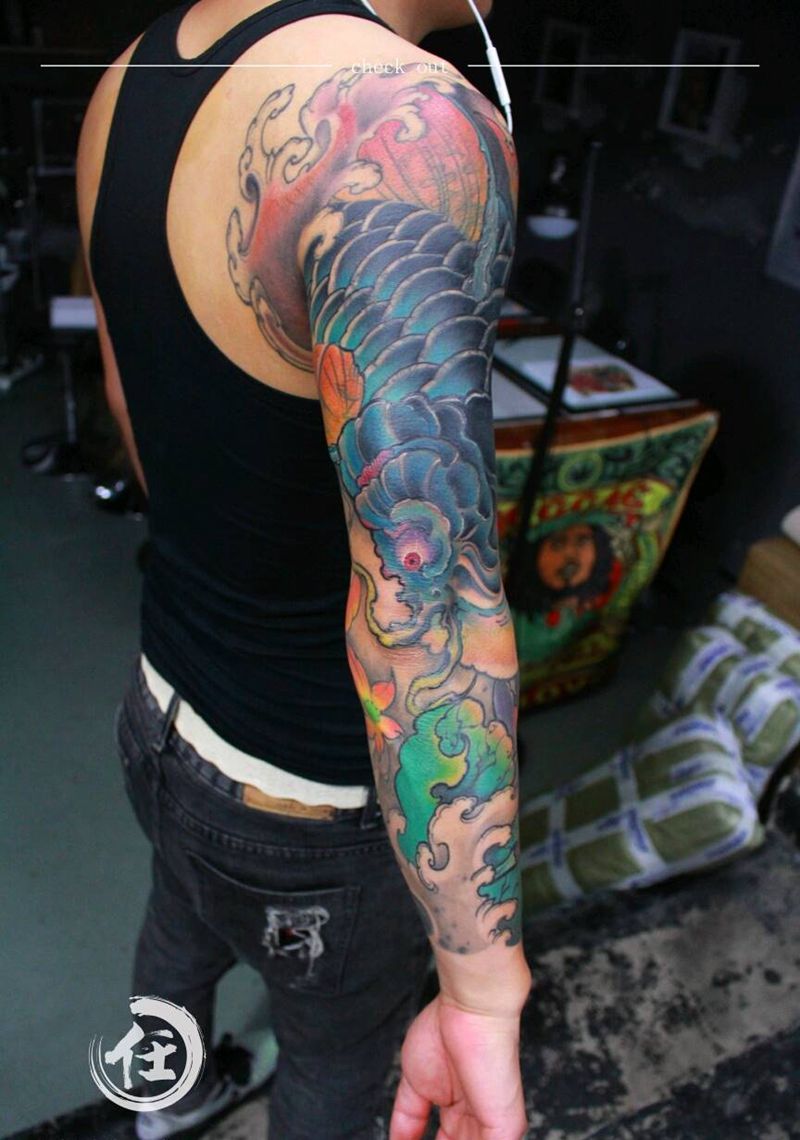 当前位置: 首页 >上海市纹身店-上海任刺青纹身工作室纹身图案>鲤鱼遮盖纹身图片_手臂传统动物植物成品纹身图案
