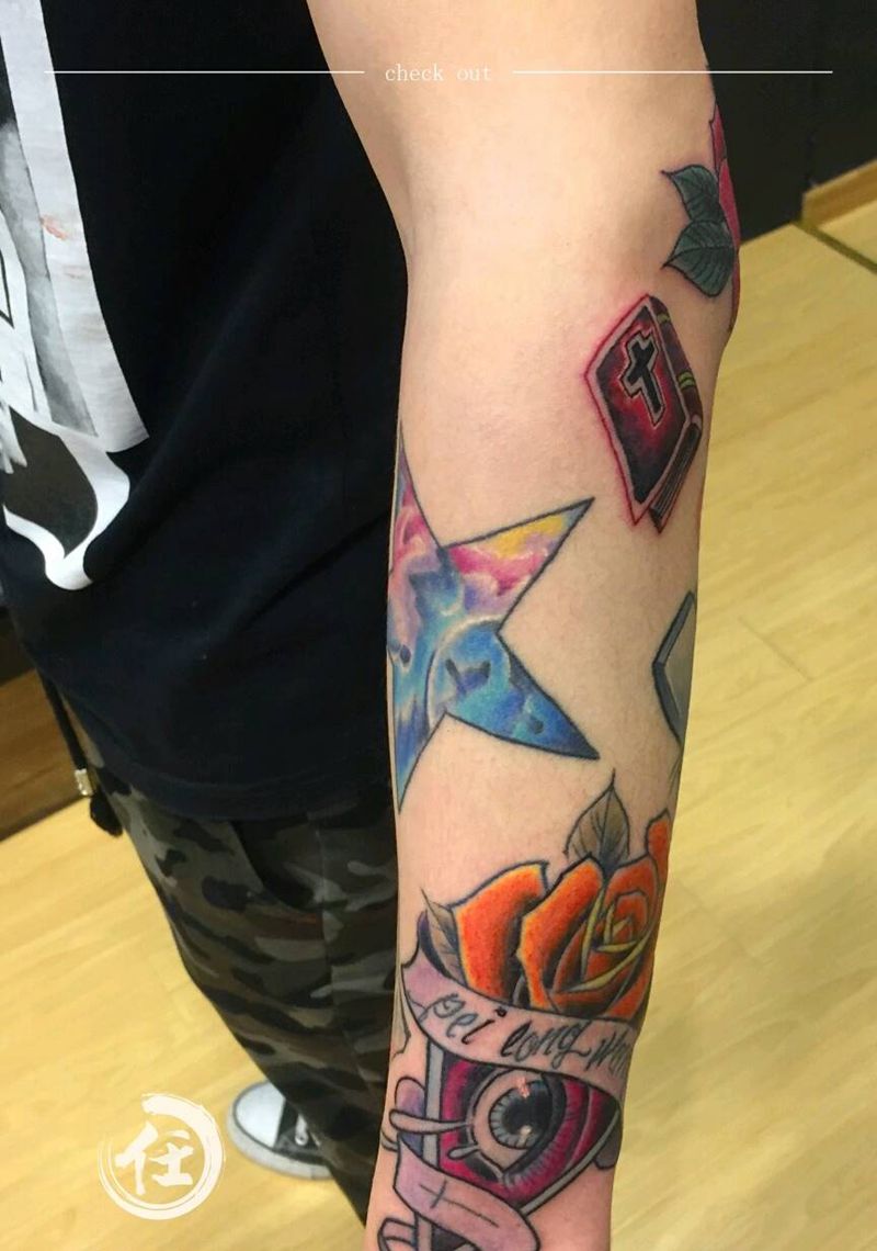 当前位置: 首页 >上海市纹身店-上海任刺青纹身工作室纹身图案>拼接花臂纹身图片_手臂欧美清新人物静物宗教纹身图案