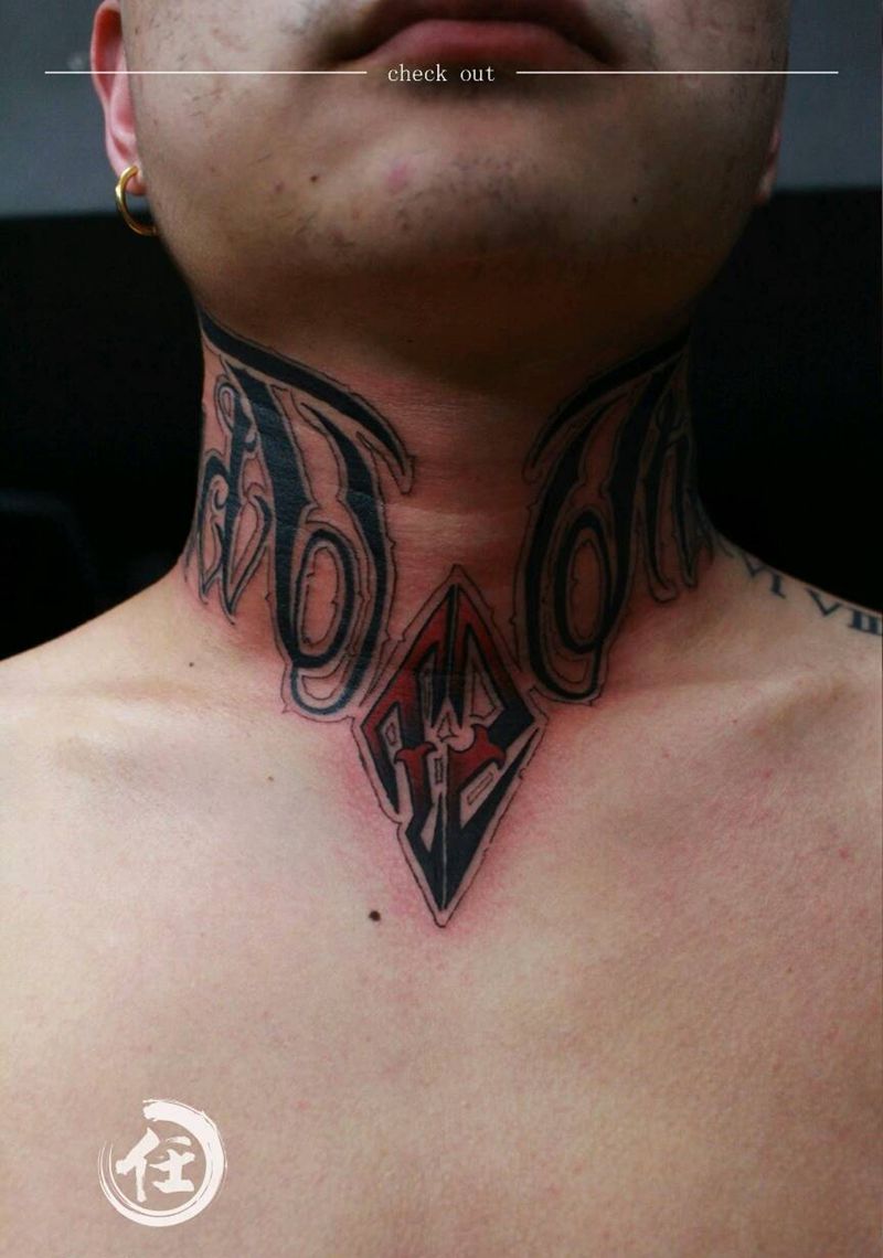 奇卡诺纹身图片_颈部字符原创成品纹身图案