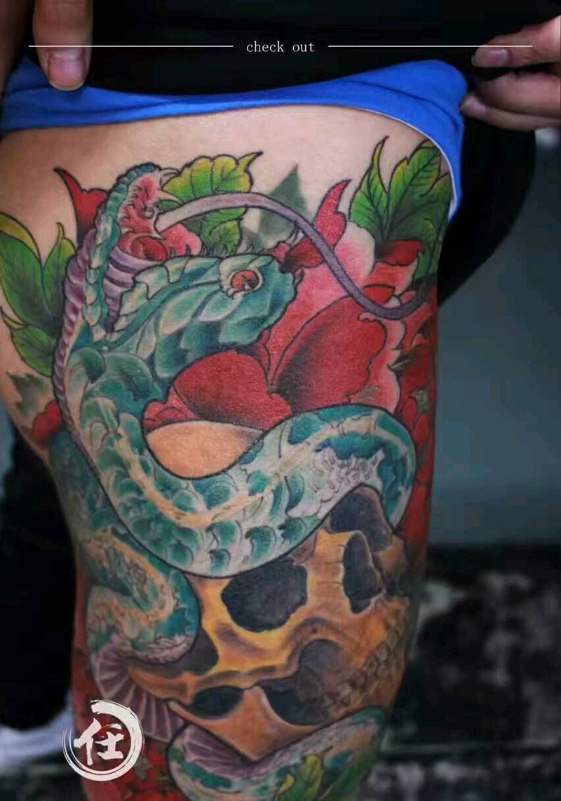 当前位置: 首页 >上海市纹身店-上海任刺青纹身工作室纹身图案>花与蛇纹身图片_腿部欧美鬼神成品纹身图案