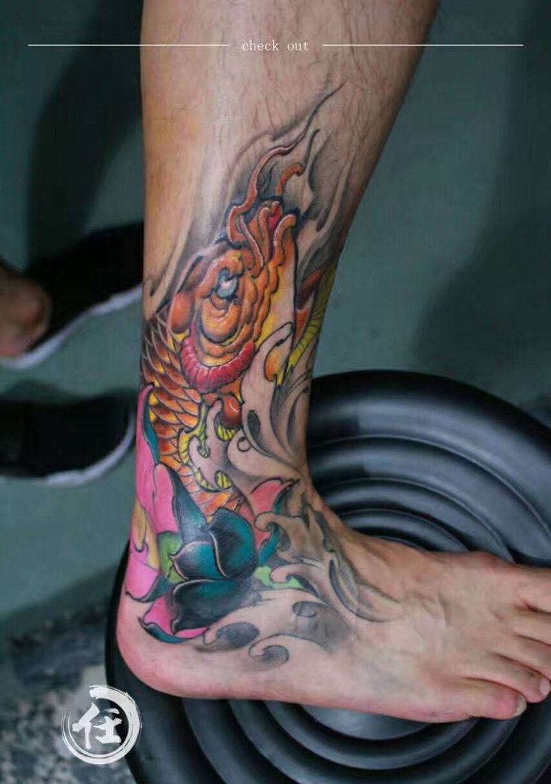 • T网红王老大花腿龙纹身图片_腿部新传统纹身图案