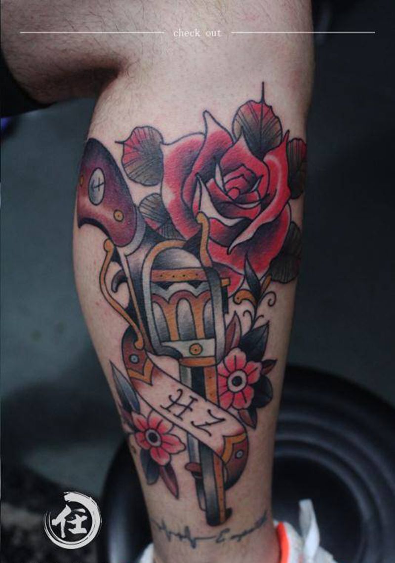 当前位置: 首页 >上海市纹身店-上海任刺青纹身工作室纹身图案>枪与玫瑰纹身图片_成品腿部欧美纹身图案