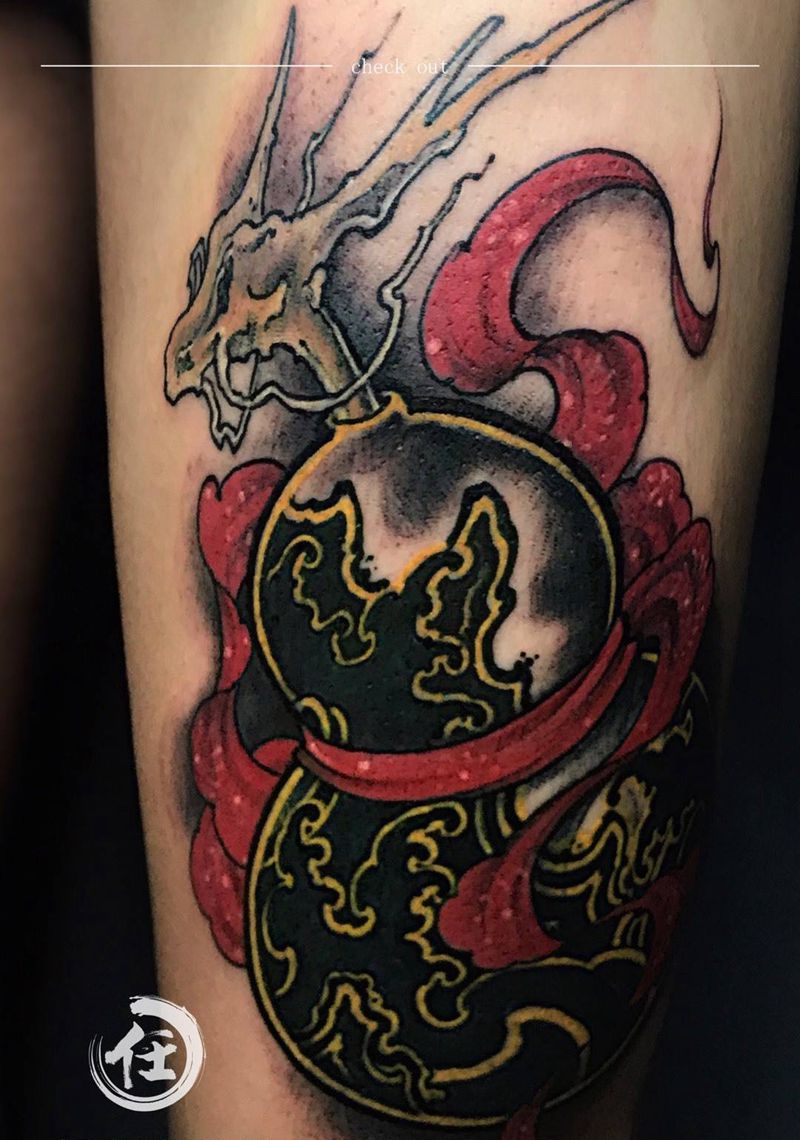 • T网红王老大花腿龙纹身图片_腿部新传统纹身图案