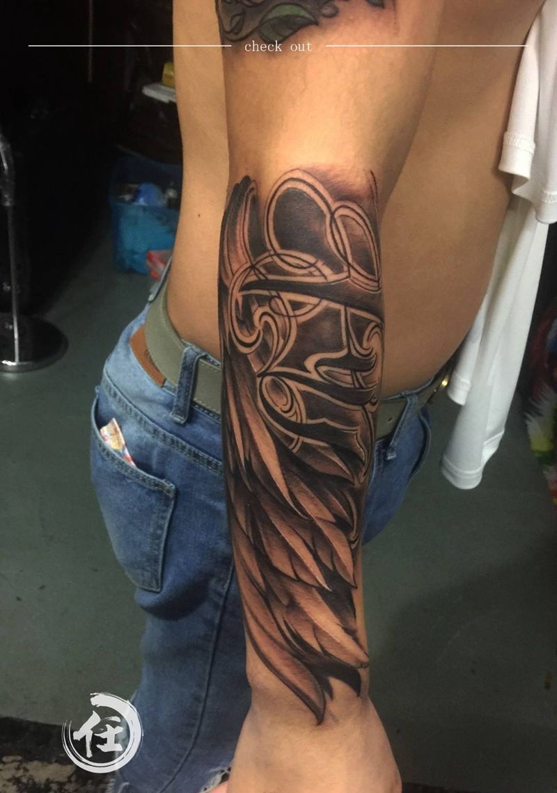 Boss 作品,翅膀2耗时6小时纹身图片_成品手臂动物静物写实欧美纹身图案