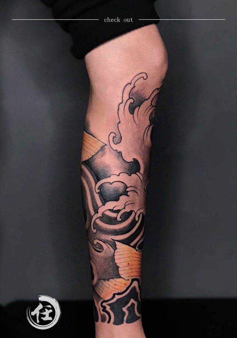 • T网红王老大花腿龙纹身图片_腿部新传统纹身图案