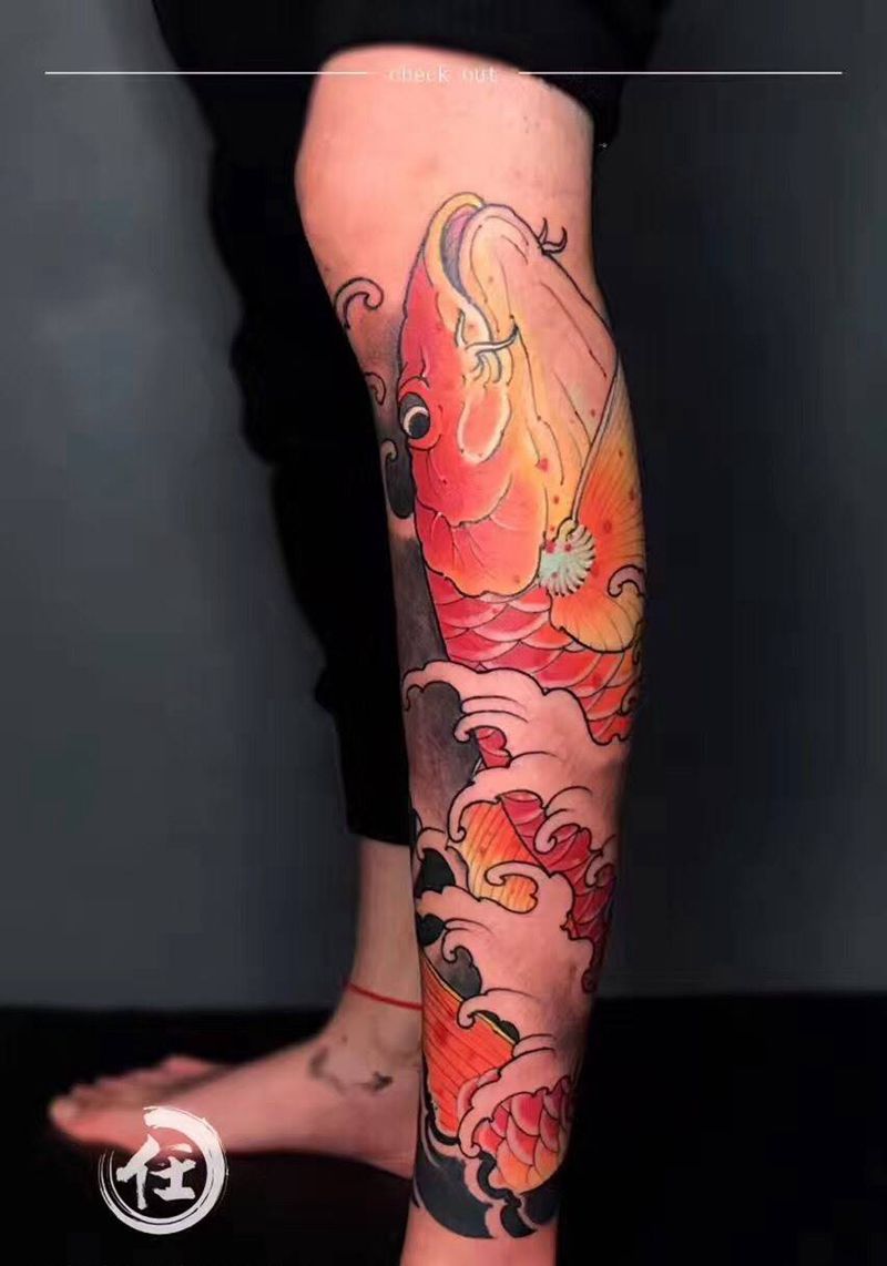 大鲤鱼纹身图片_成品手臂传统国画原创动物纹身图案