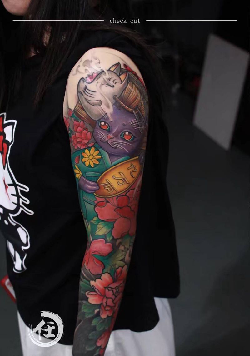 当前位置: 首页 >上海市纹身店-上海任刺青纹身工作室纹身图案>招财猫花臂遮盖纹身图片_原创动物鬼神成品传统手部手臂国画纹身图案