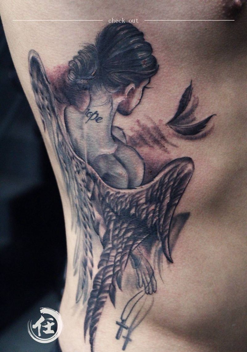 当前位置: 首页 >上海市纹身店-上海任刺青纹身工作室纹身图案>赤裸天使纹身图片_成品鬼神欧美写实腰部纹身图案
