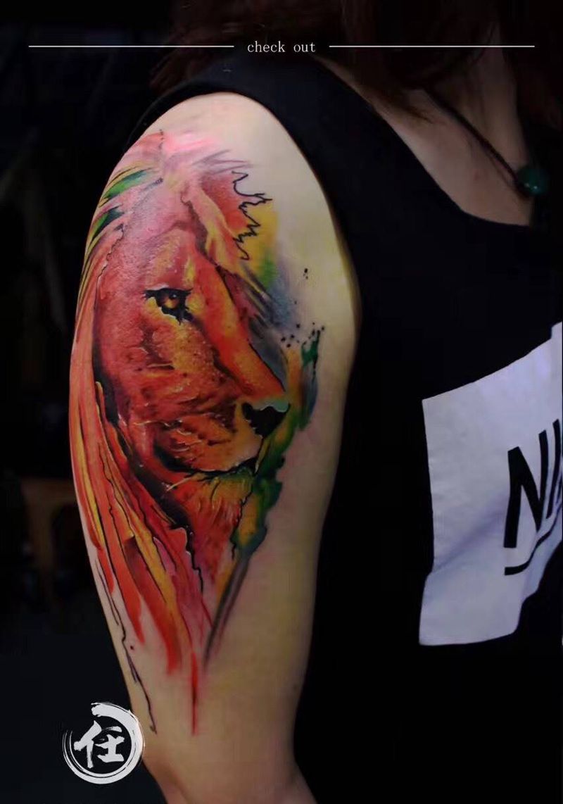 当前位置: 首页 >上海市纹身店-上海任刺青纹身工作室纹身图案>水彩狮子纹身图片_成品欧美清新写实动物手臂纹身图案