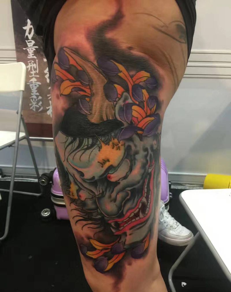 • T网红王老大花腿龙纹身图片_腿部新传统纹身图案