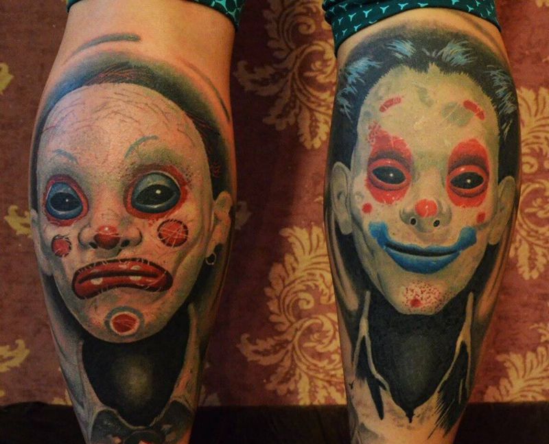 • T包小腿吹火男+阿多福纹身图片_腿部老传统新传统吹火男阿