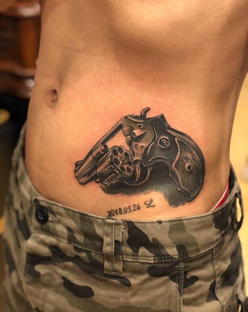 枪纹身图片_欧美传统写实腿部手部脚部背部腰部肩部手臂纹身图案