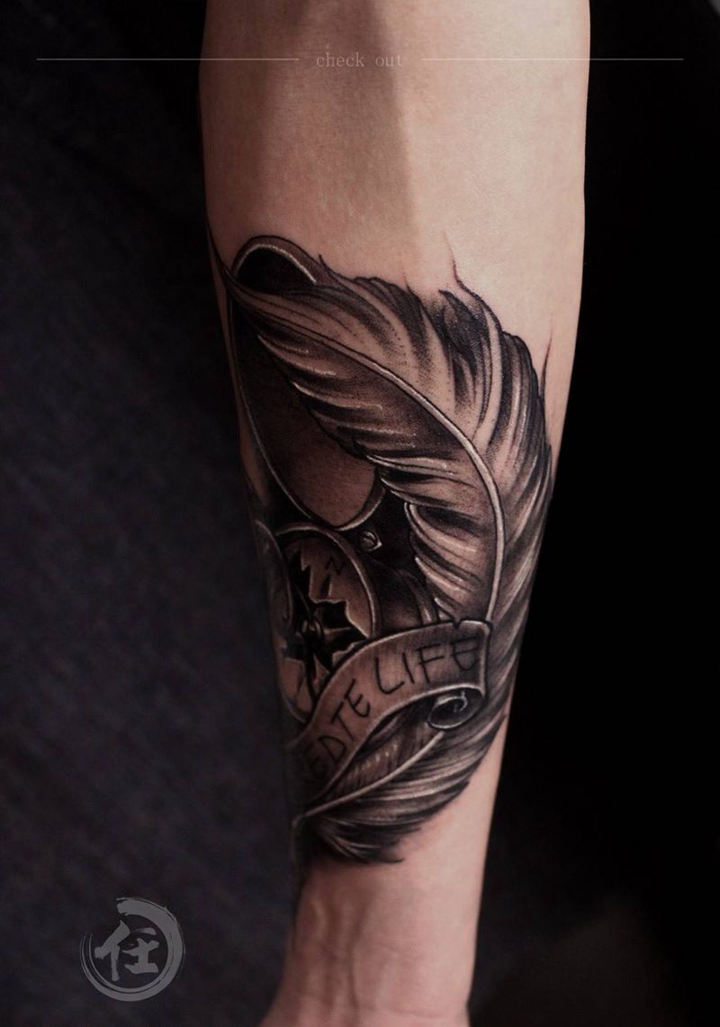 当前位置: 首页 >上海市纹身店-上海任刺青纹身工作室纹身图案>指南针羽毛纹身图片_写实脚部腿部手部背部腰部手臂胸部肩部传统纹身图案