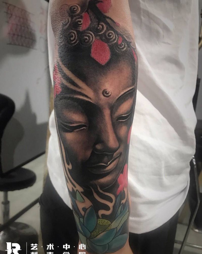 小臂外侧佛像纹身图片_手臂手部新传统欧美写实纹身图案