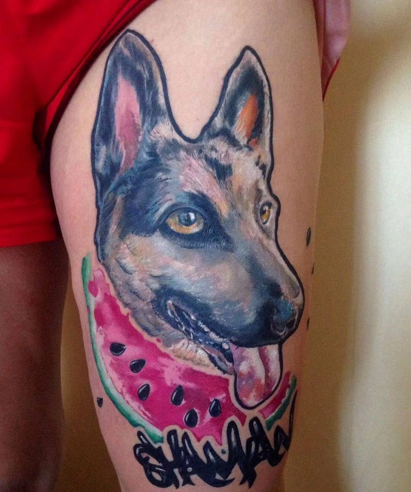 俄罗斯美女纹身师纹身图片_腿部手臂欧美写实New School纹身图案