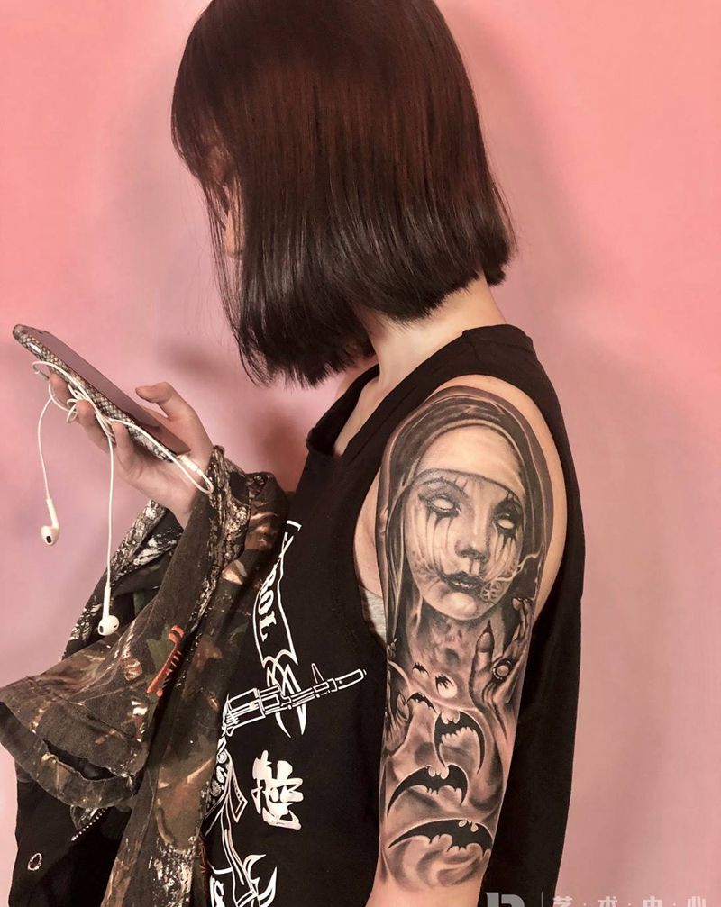 当前位置: 首页 >上海市纹身店-上海任刺青纹身工作室纹身图案>暗黑修女纹身图片_手臂欧美写实纹身图案